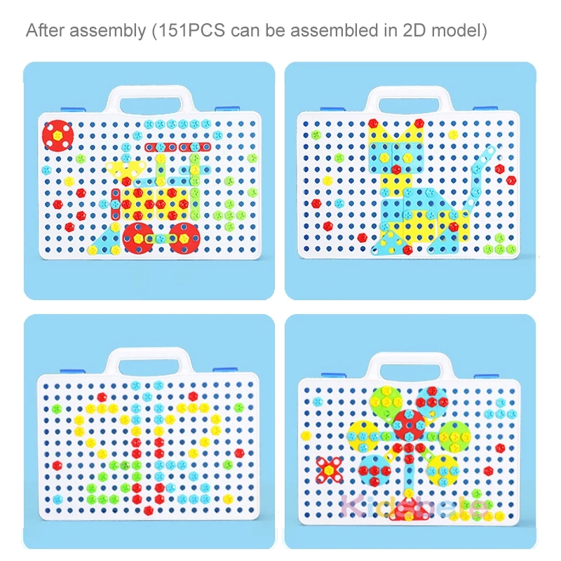 As crianças podem broca colorido parafusos na placa para fazer toneladas de projetos frescos.